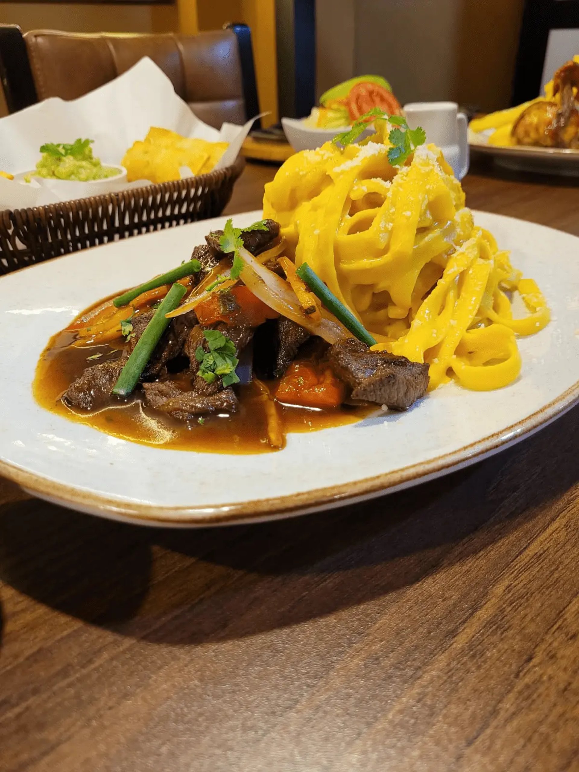 Tradición y fusión en un solo plato: fetuccini a la huancaína con lomo saltado, el encuentro perfecto entre lo criollo y lo moderno. Una especialidad de Casa Querencia que enamora a todos.